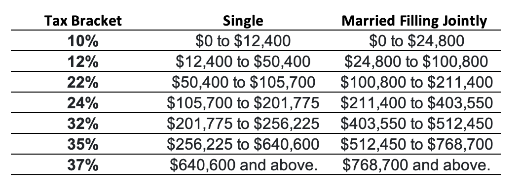 The favorable changes made via the Tax Cuts and Jobs Act are set to sunset after 2025. Until then we may not see any material changes apart from normal inflation adjustments to the brackets. See chart for updated brackets, no changes to the rates.