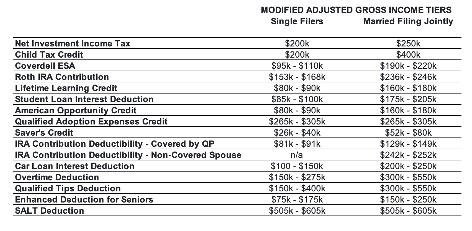 As for the finer points of your tax return—such as deductions and credits—refer to the chart below. Our post on The Big Beautiful Bill provides additional detail on the newer provisions, including the Enhanced Senior Deduction and the expanded SALT deduction.